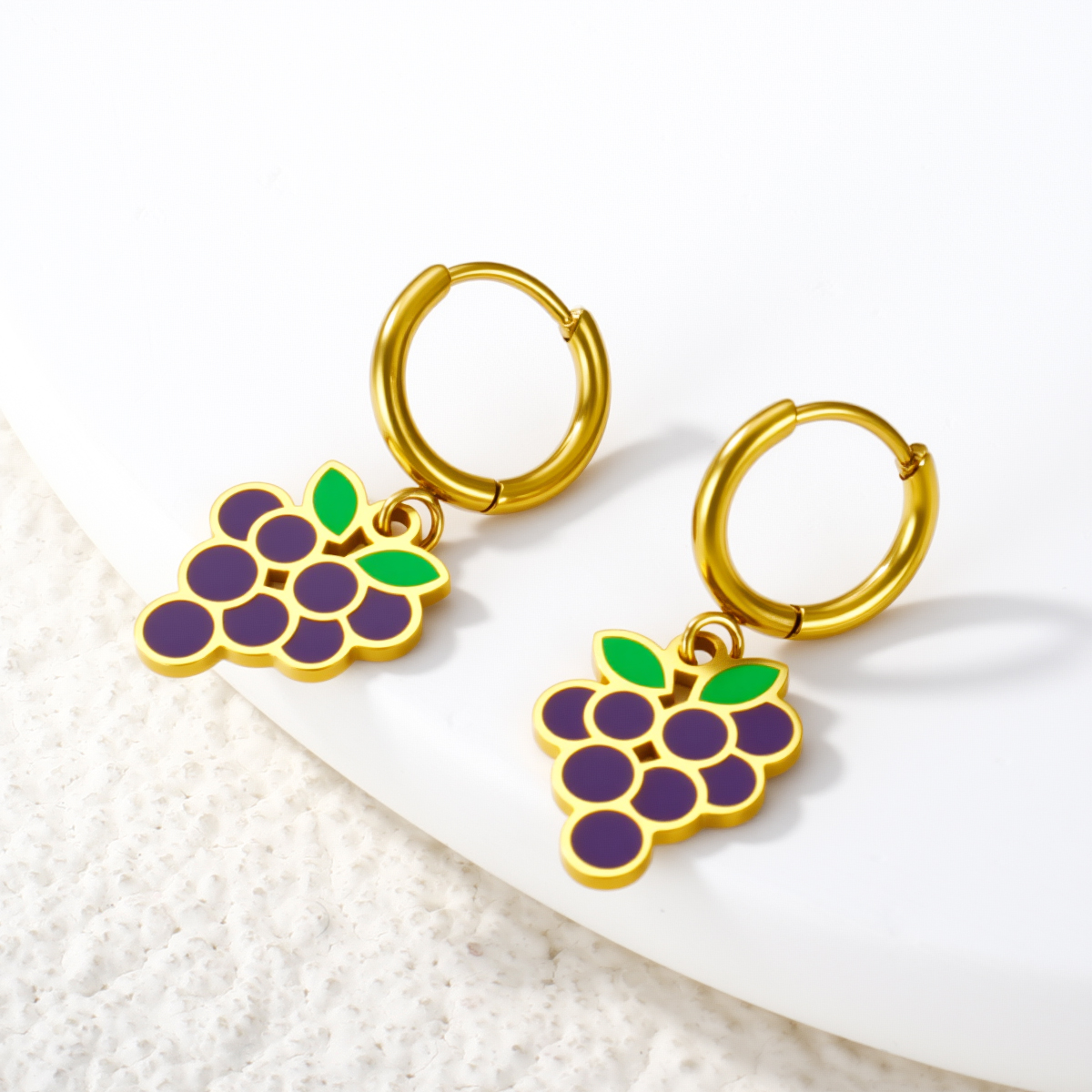 "时尚彩色镀金紫色葡萄项链耳环套装"