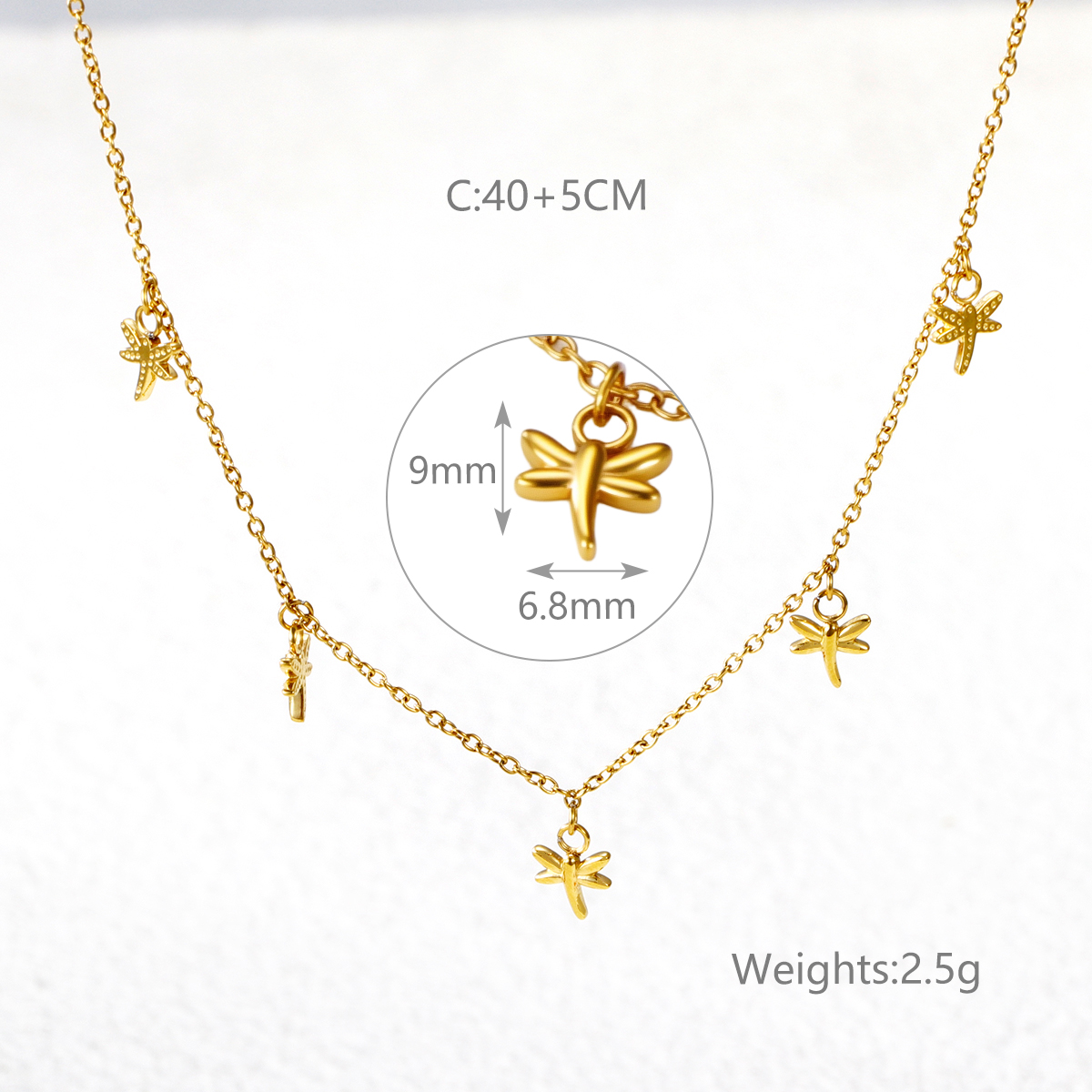 "女士时尚项链带蜻蜓和几何图案"