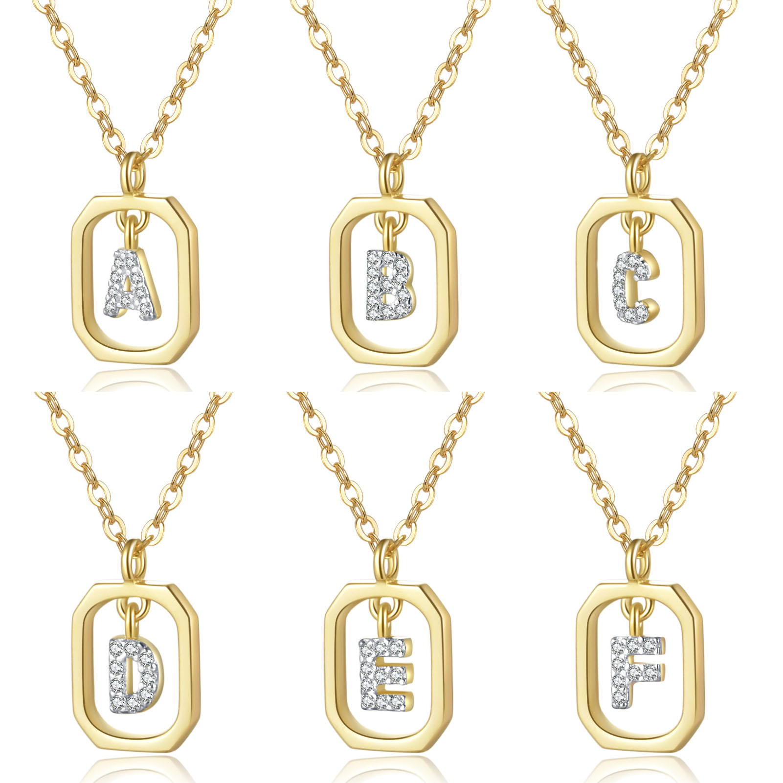 "925 纯银长方形锆石字母项链"