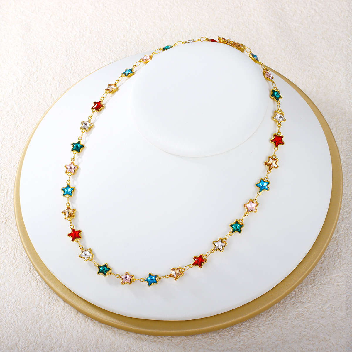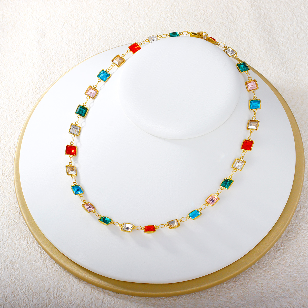 "心形圆形水滴形彩色锆石不锈钢项链"