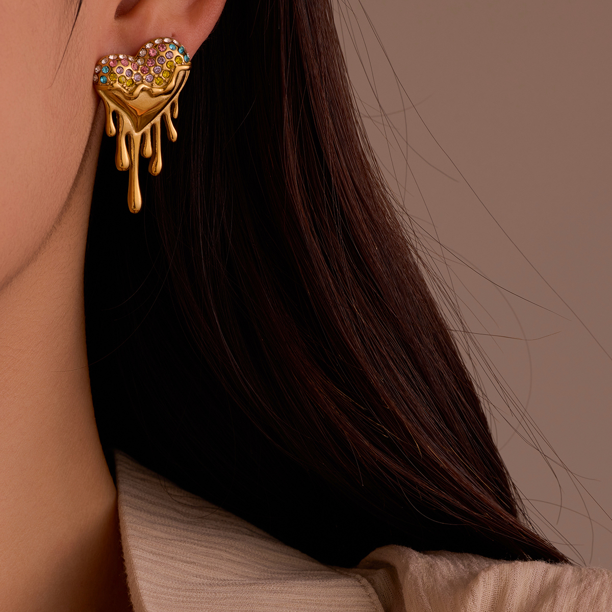 心形水钻镶嵌时尚耳钉