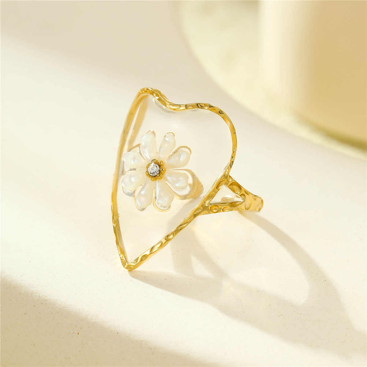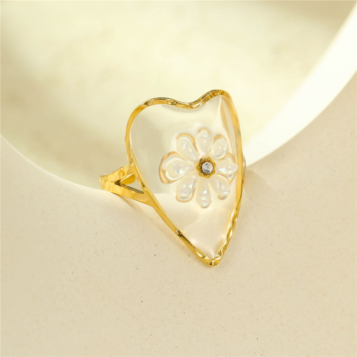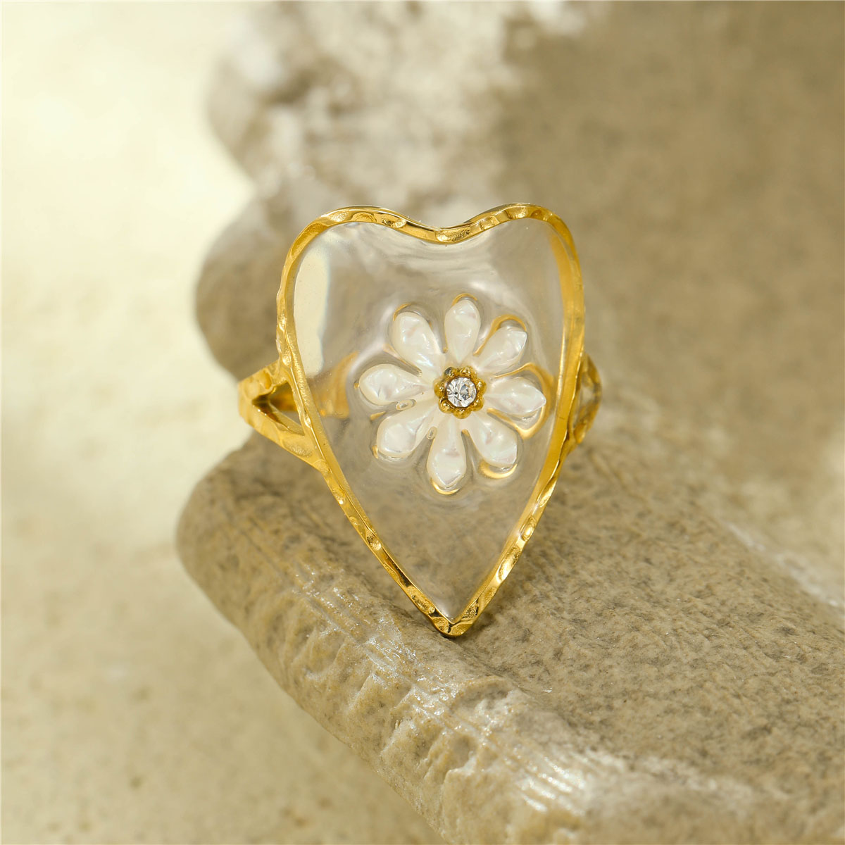 "时尚不锈钢透明花朵形锆石戒指"