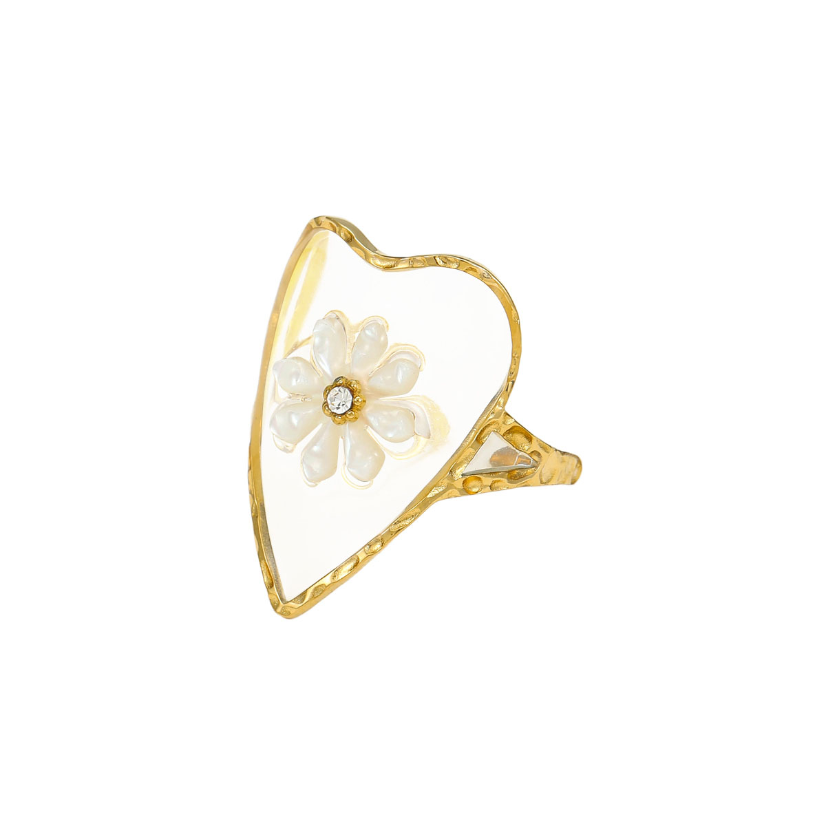时尚不锈钢透明花朵形锆石戒指