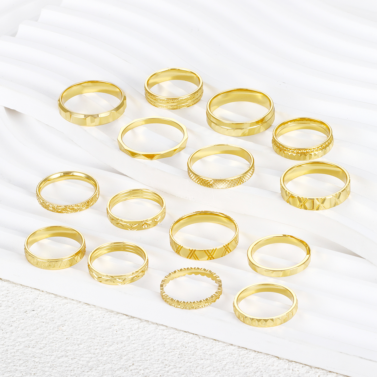18k镀金简约珠宝几何切线平面戒指