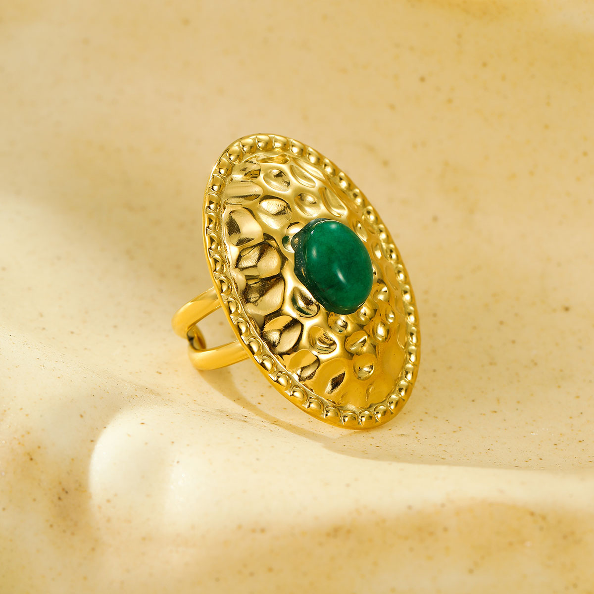 不锈钢椭圆形天然宝石镶嵌开口戒指