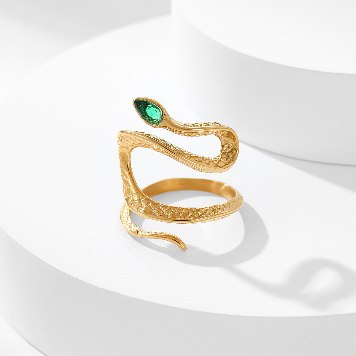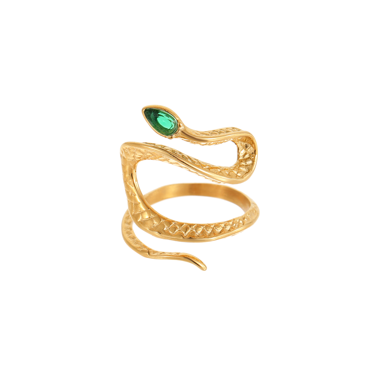 "新款18K镀金蛇形绿锆石戒指 "