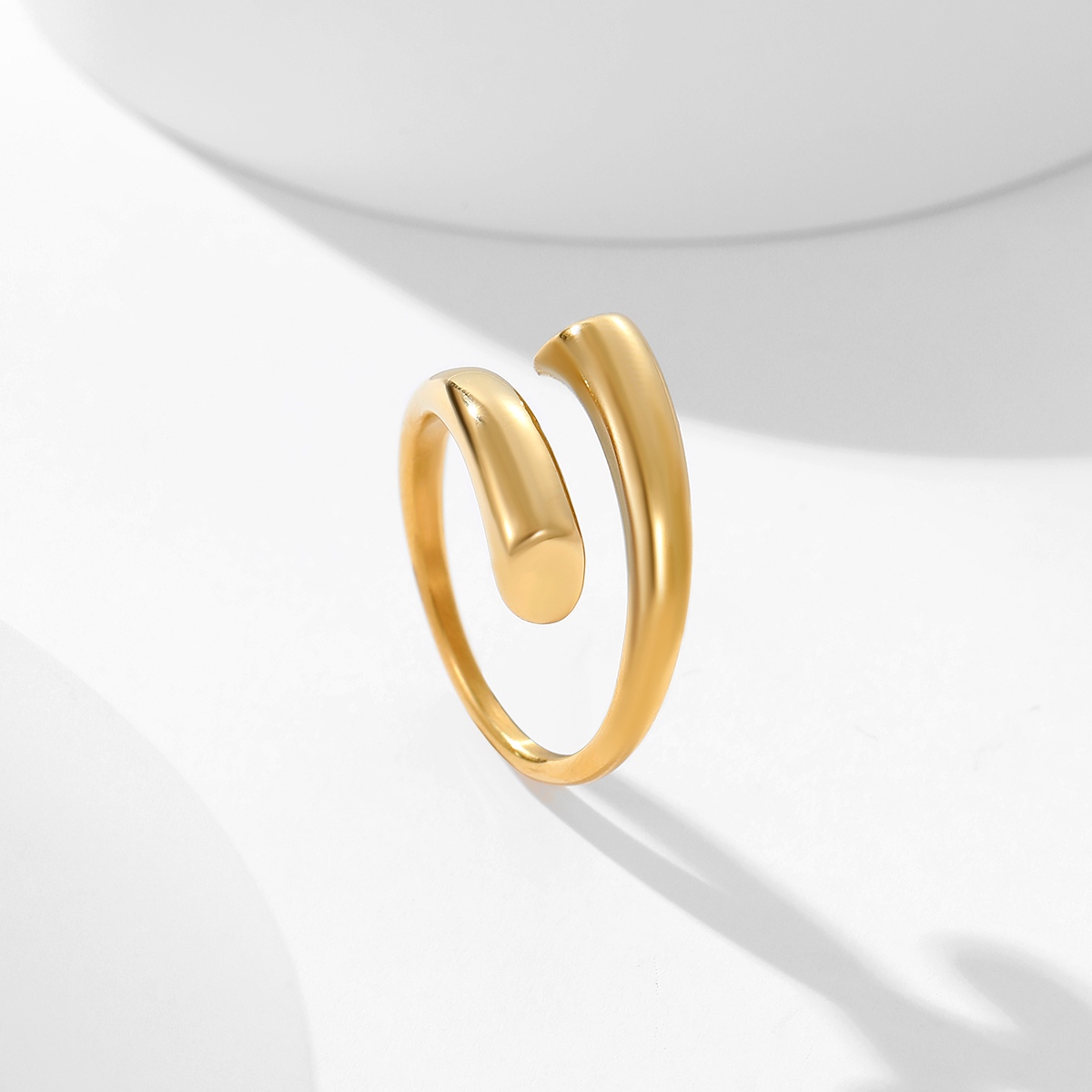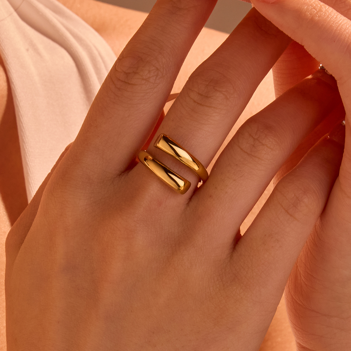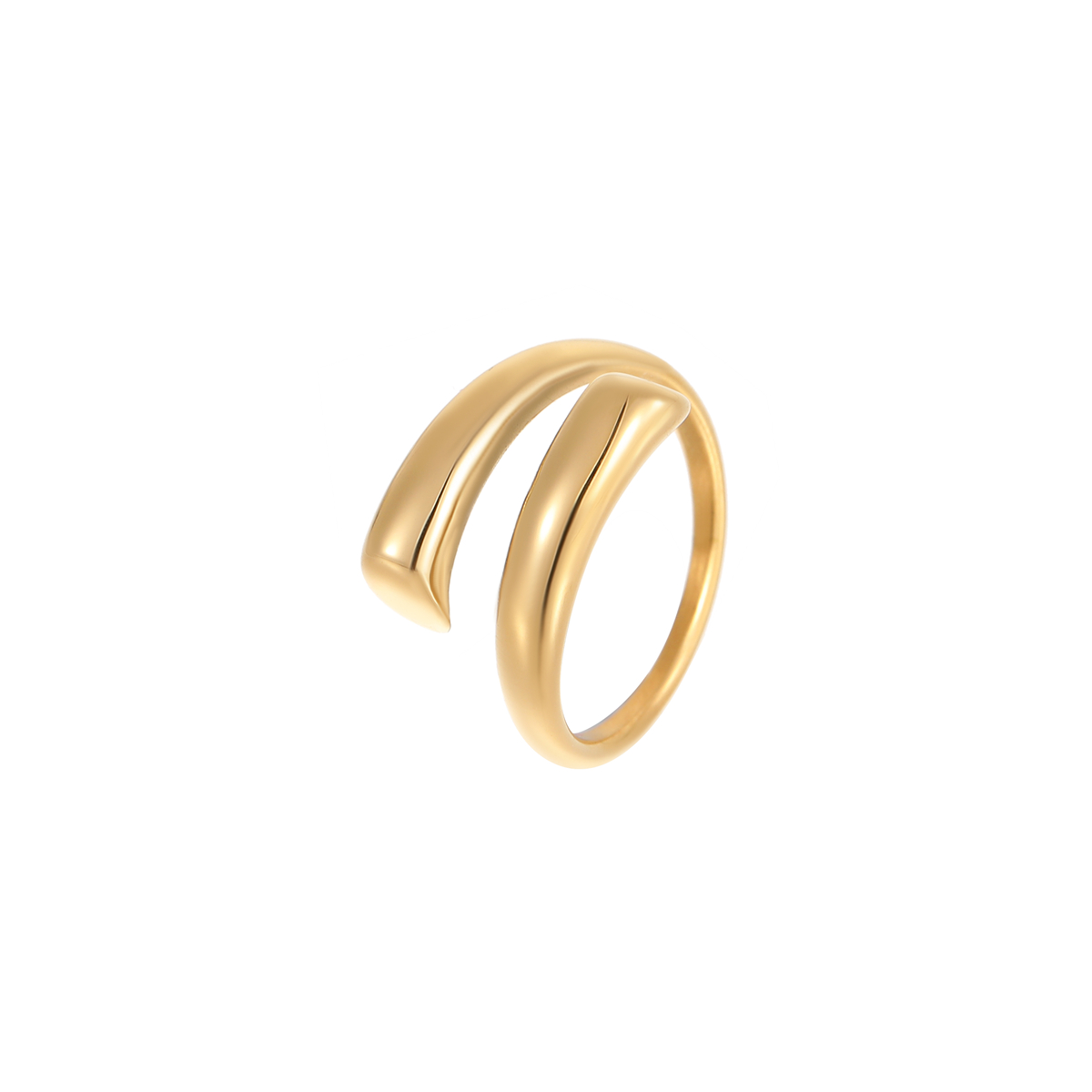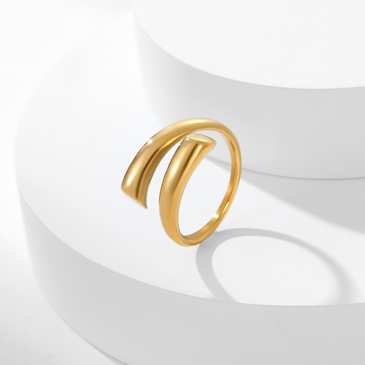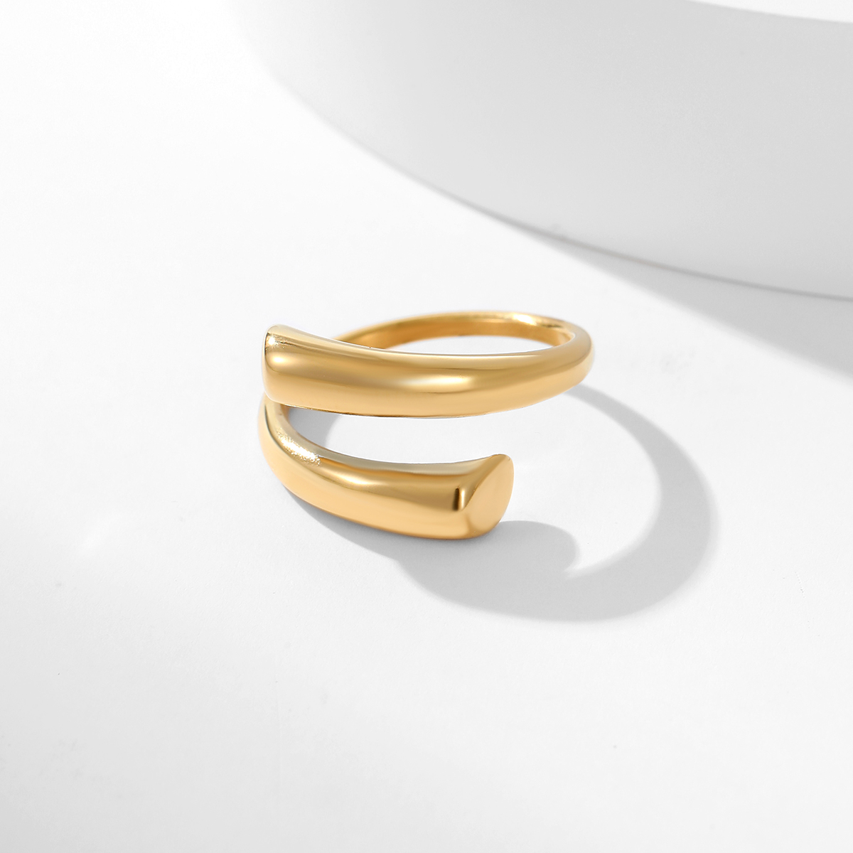 " 18K镀金不锈钢圆线双层抱环戒指"
