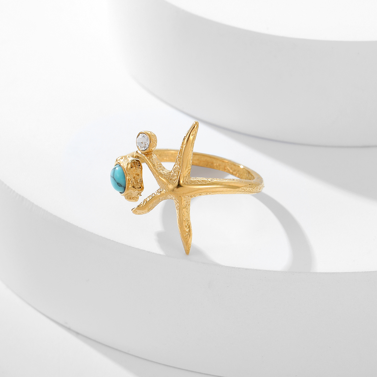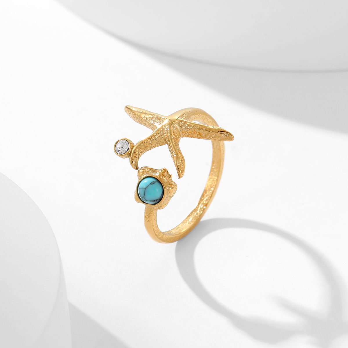 "18K镀金珠宝海星镶宝石戒指"